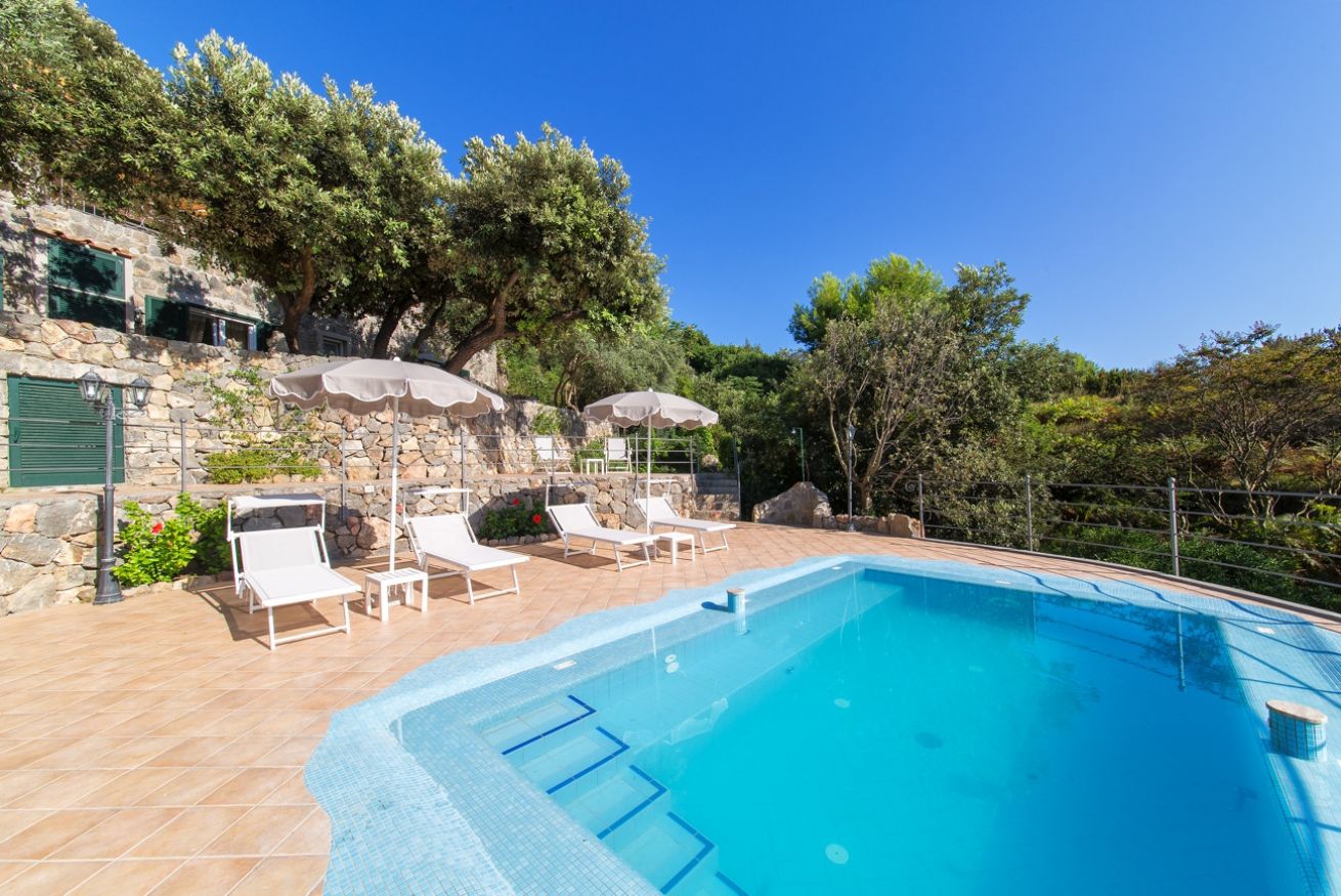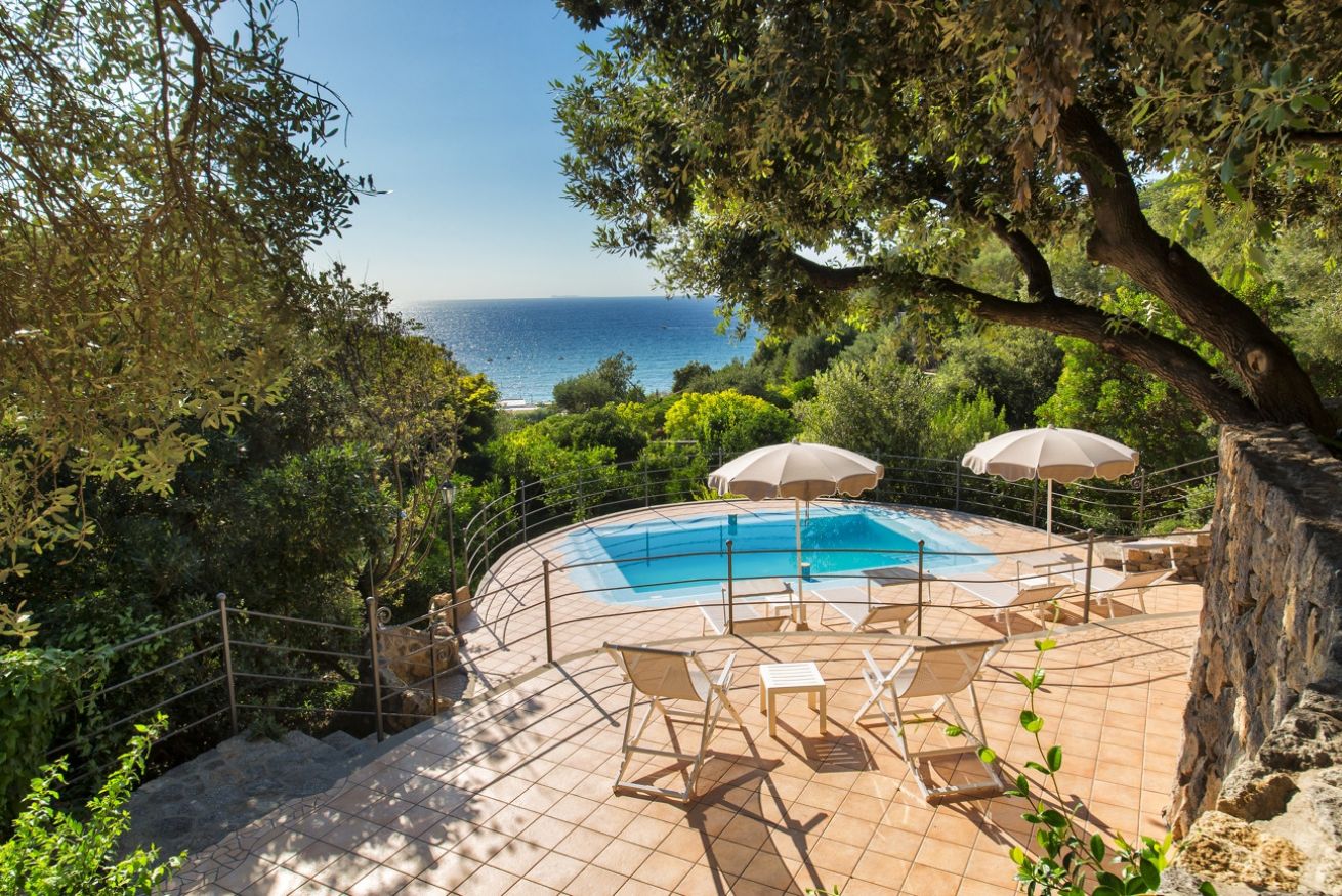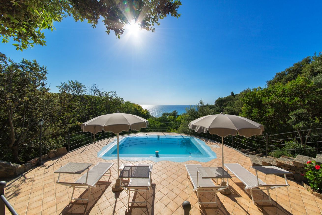 Fiore all’occhiello della villa è sicuramente la sua piscina panoramica affacciata sul mare, servita da ombrelloni e lettini, alla quale si accede attraverso un sentiero immerso nella macchia mediterranea. Disponibile parcheggio privato con cancello elettrico.