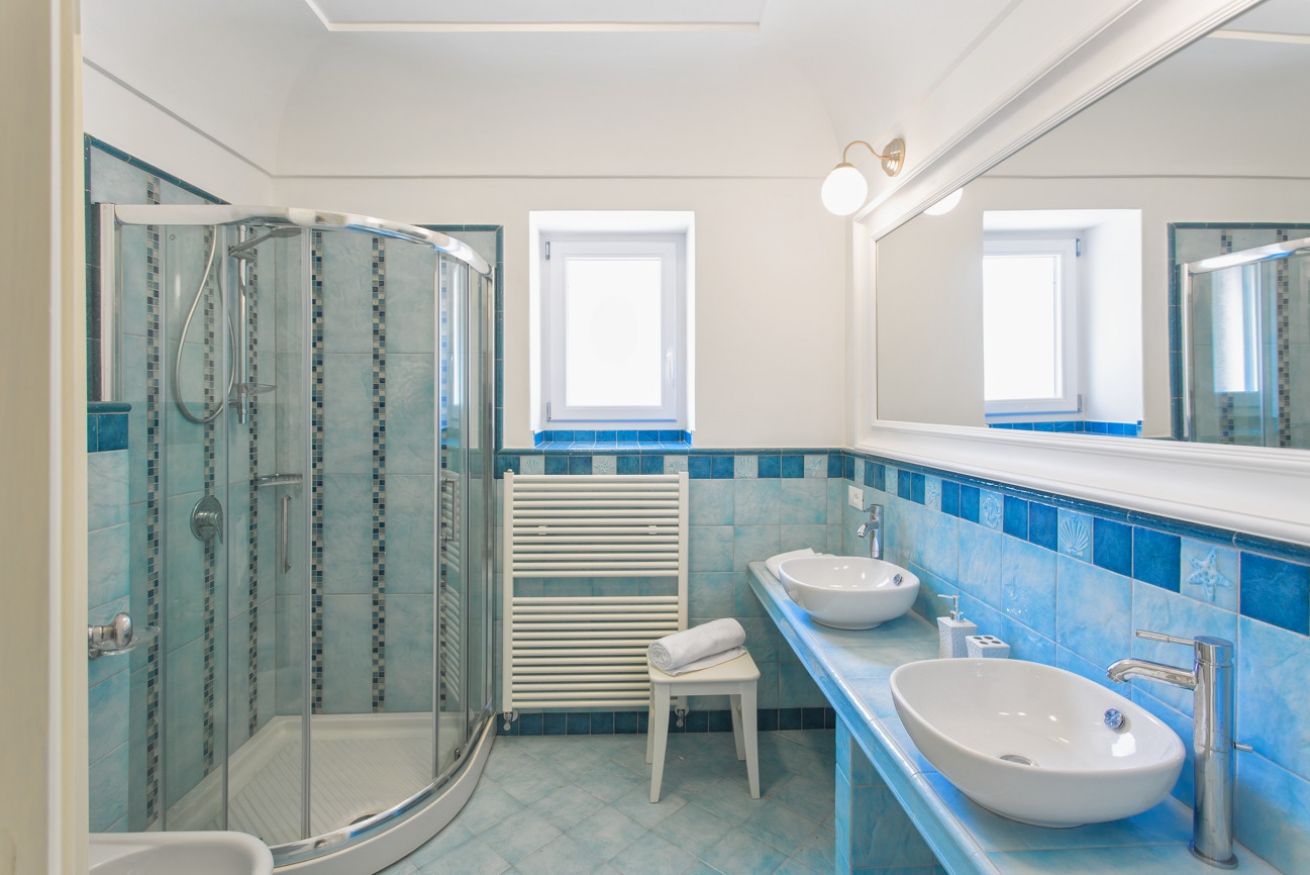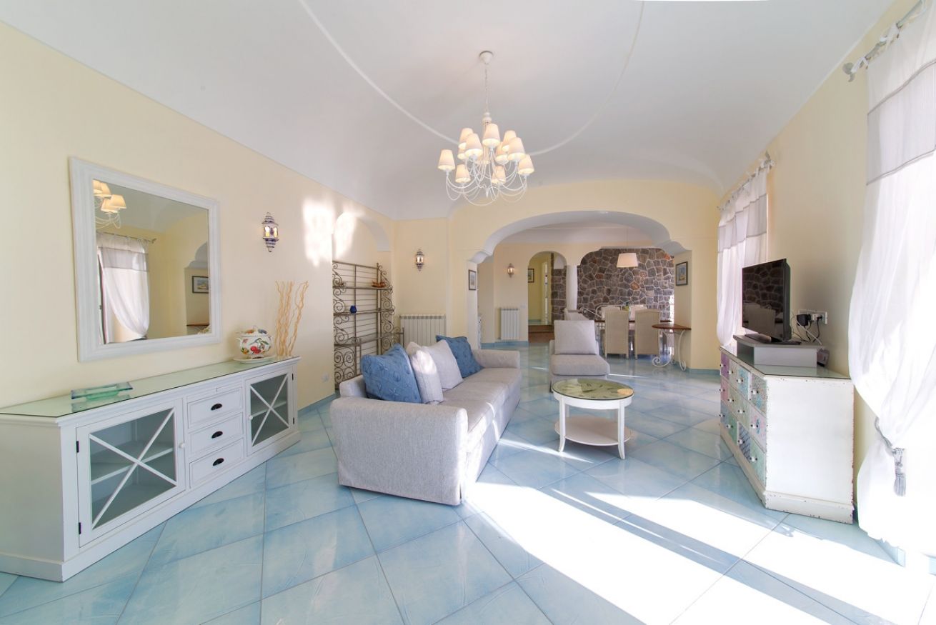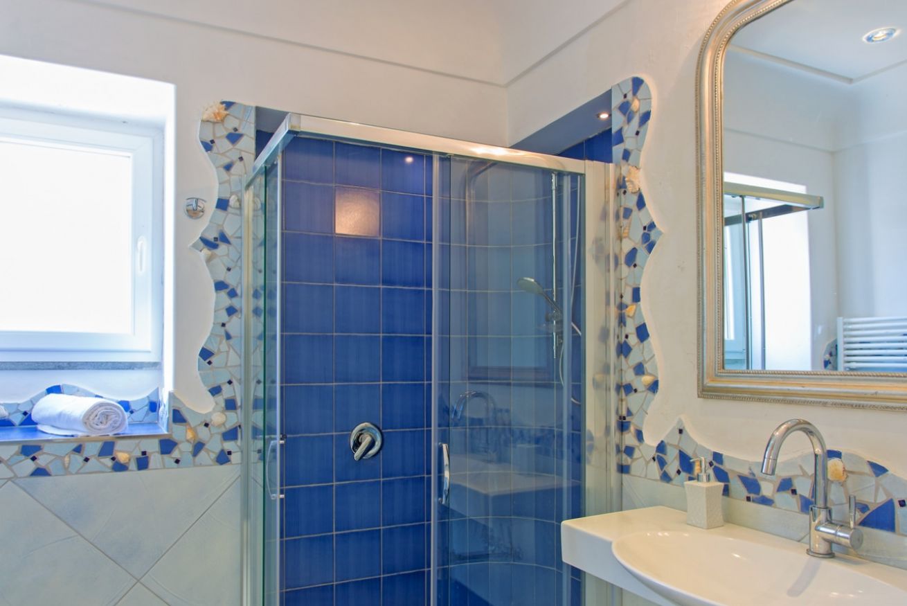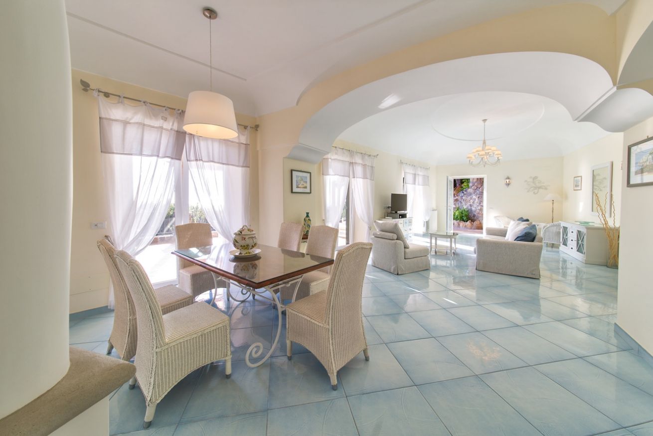 Villa Azzurra è incorniciata da fitta vegetazione e, con le sue ampie terrazze, si volge interamente verso il mare. La villa si sviluppa su due piani: al piano terra ci sono tre camere da letto con letti matrimoniali, due bagni con doccia e servizi.