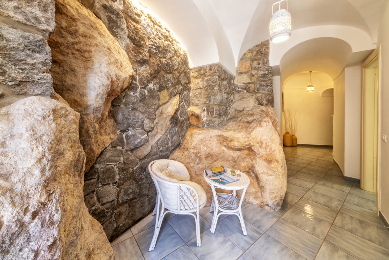 From the private parking area, the villa is accessed via an avenue carved into the rock. The villa consists of a large living area with kitchenette equipped with all appliances, two master double bedrooms with private bathroom, for a total of four beds to which an additional bed can be added in the living area.