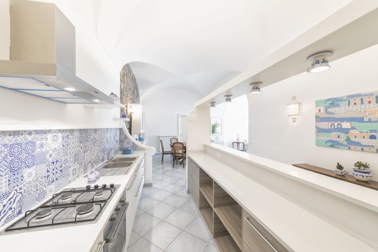 The furnishings and architectural details have been designed to highlight the beauty of typically island tiles, illuminating the rooms with shades of white, blue and blue.